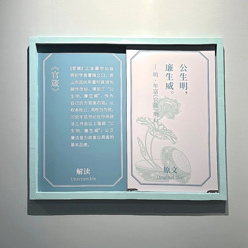 “大贤秉高鉴,公烛无私光”“公生明,廉生威”,展览以习近平总书记的十大廉政用典为结语,从历史深处、思想深处深刻揭示廉政建设的重大意义。从古至今,许许多多的清廉人物和廉洁故事教育着一代代的中国人。