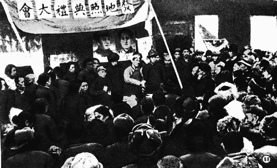 冀中农民举行拥护土地改革运动大会。 新华社图片