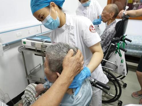 同时针灸康复科住院部还开展了吞咽障碍特色中医康复及护理,包括:耳穴压丸、艾灸、头颈部循经推拿、可冲洗式牙刷护理、V-VST等。我院针灸康复科正朝着合并气管切开的重症吞咽障碍努力,2020年上半年已成功堵管7人次。