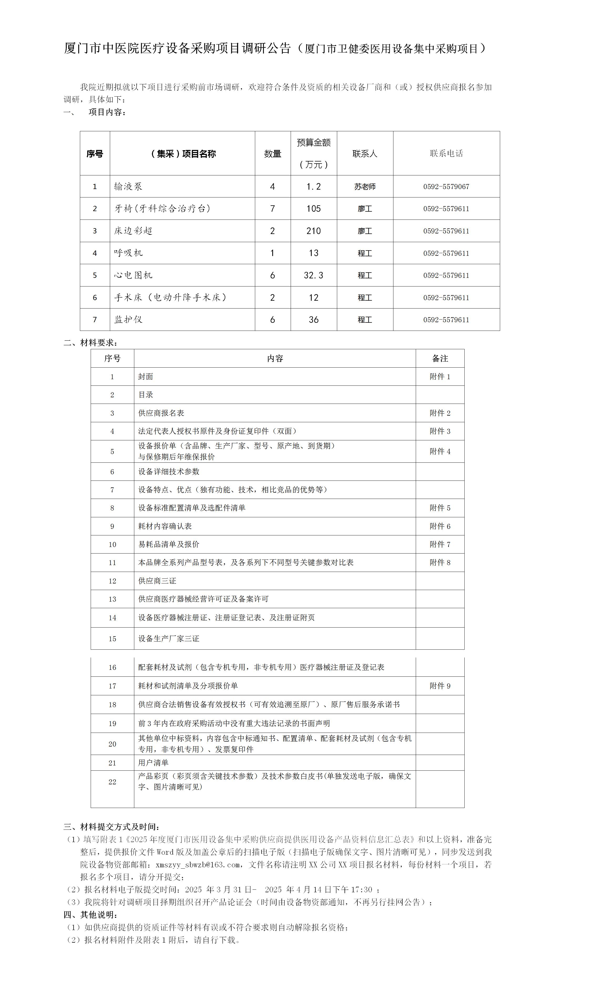 厦门市中医院医疗设备采购项目调研公告(厦门市卫健委医用设备集中采购项目)